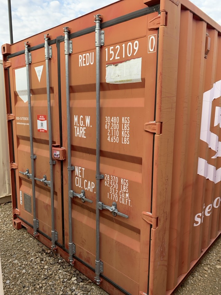Available 8’x20’x8’6″ used storage unit that is classified as “cargo-worthy”!
