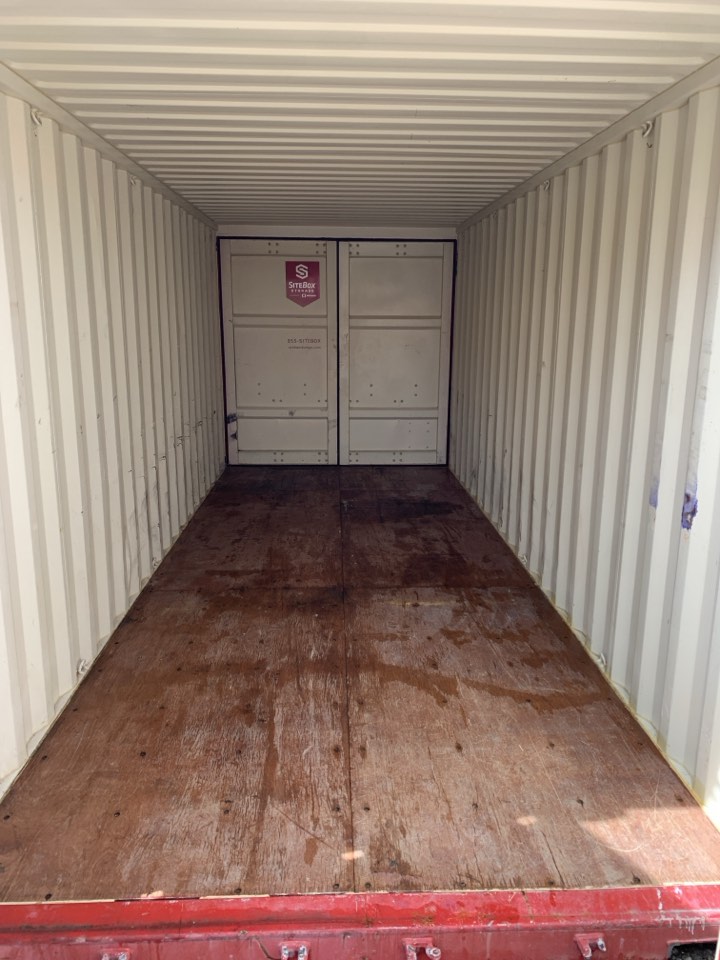 Available 8’x20’x8’6″ used storage unit that is classified as “cargo-worthy” with doors at both ends!