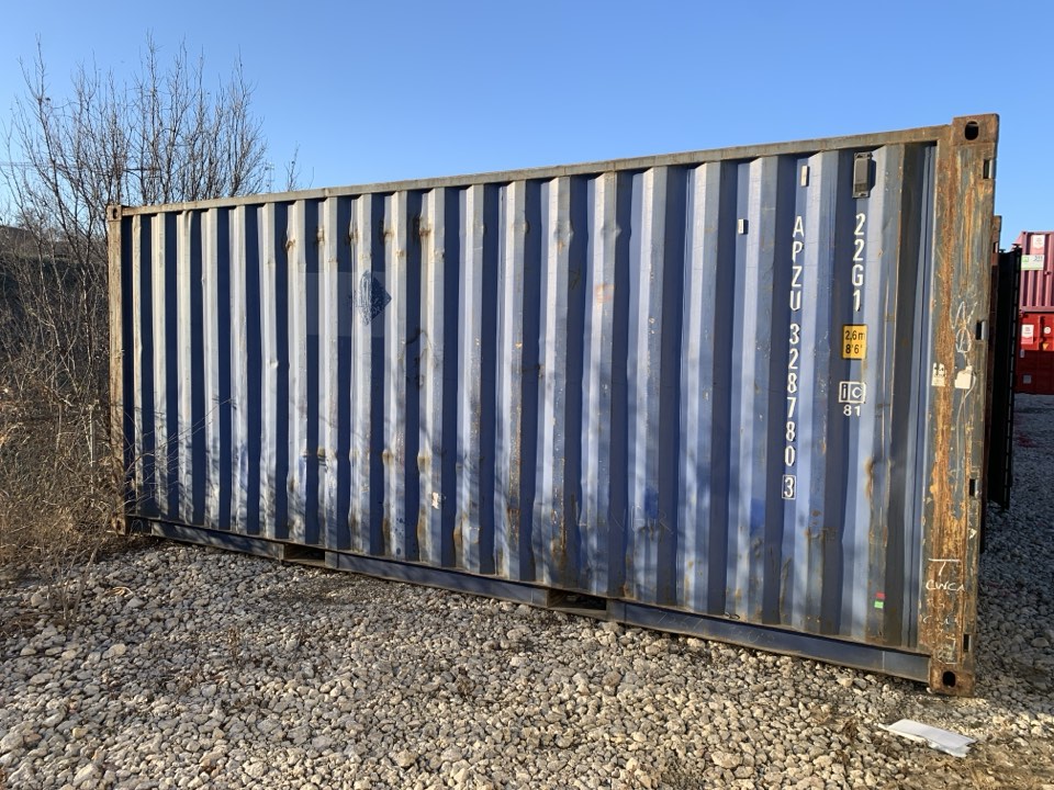 Available 8’x20’x8’6″ used storage unit that is classified as “cargo-worthy”!