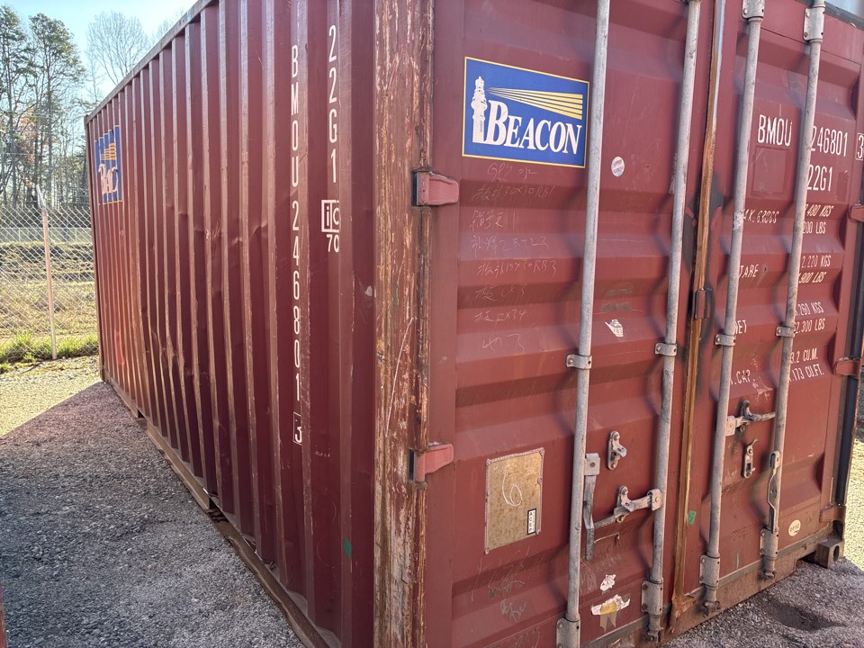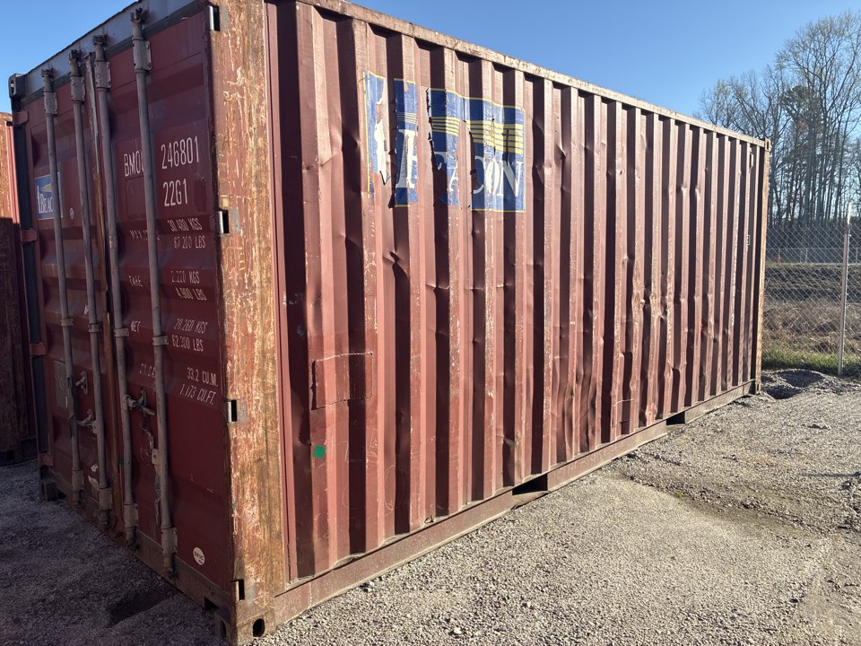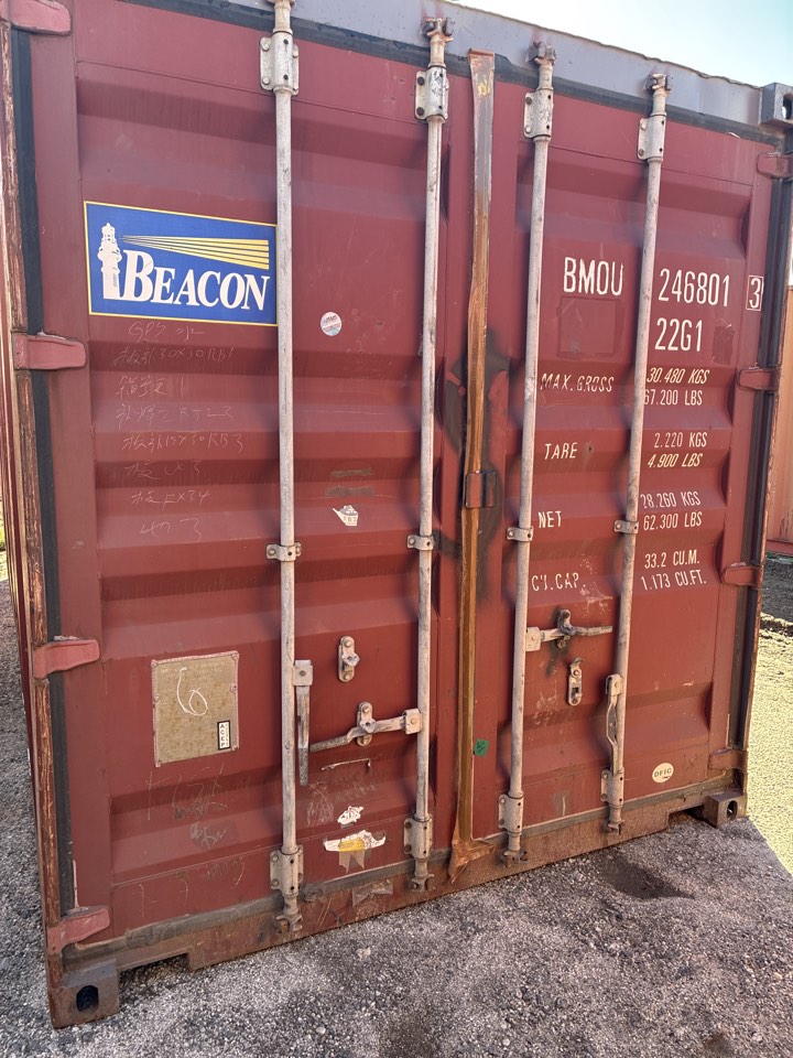 Available 8’x20’x8’6″ used storage unit that is classified as “cargo-worthy”!