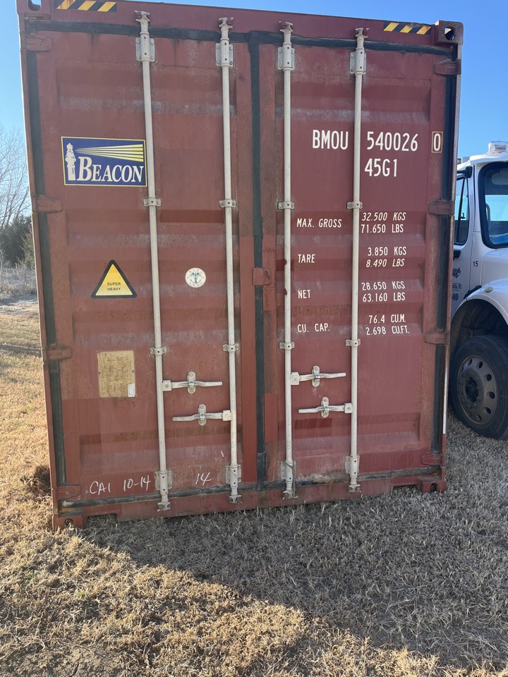 Available 8’x40’x9’6″ used storage unit that is classified as “cargo-worthy”!