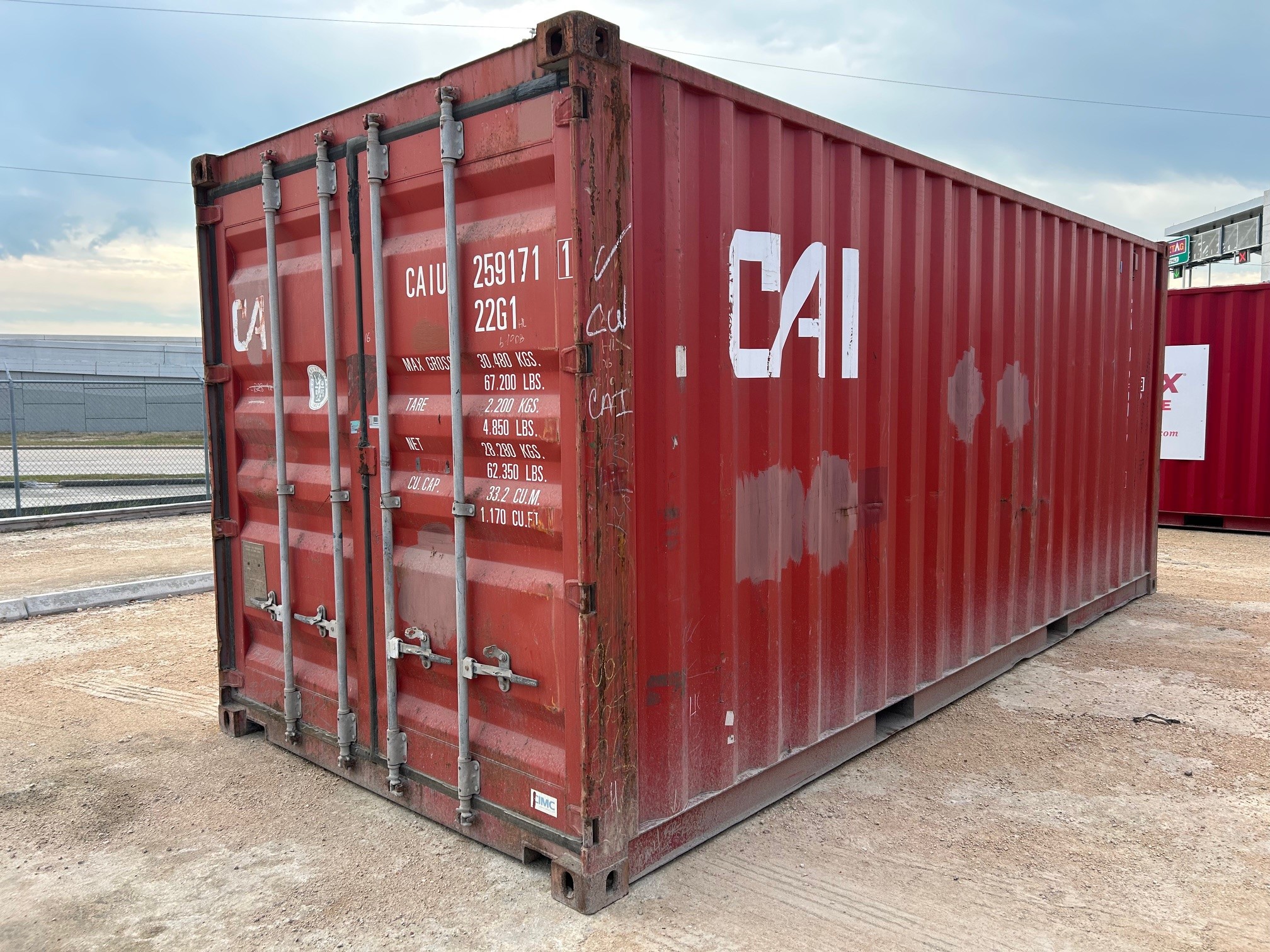 Available 8’x20’x8’6″ used storage unit that is classified as “cargo-worthy”!
