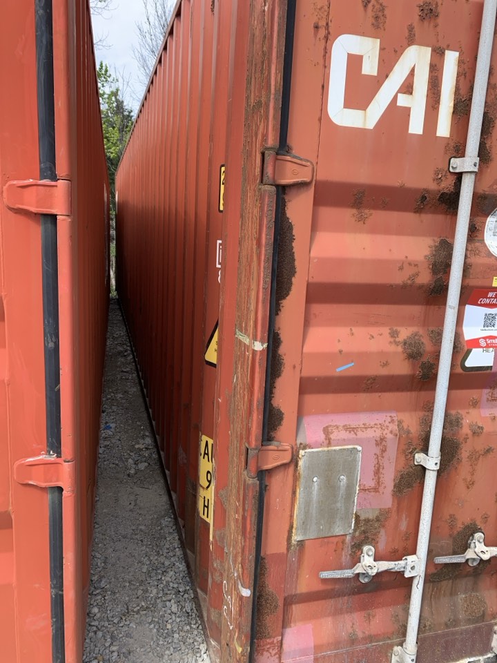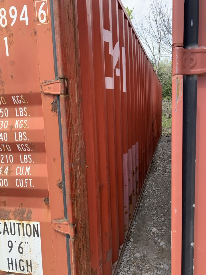 Available 8’x40’x9’6″ used storage unit that is classified as “cargo-worthy”!