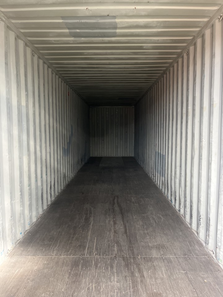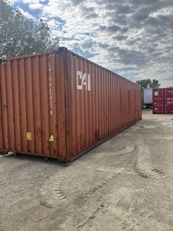 Available 8’x40’x9’6″ used storage unit that is classified as “cargo-worthy”!