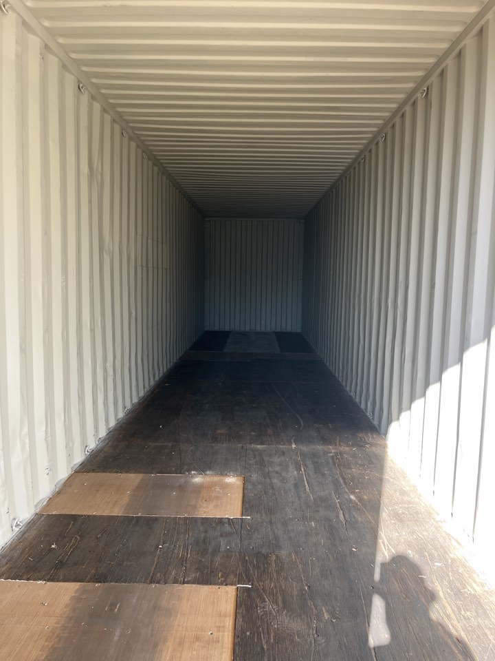 Available 8’x40’x9’6″ used storage unit that is classified as “cargo-worthy”!
