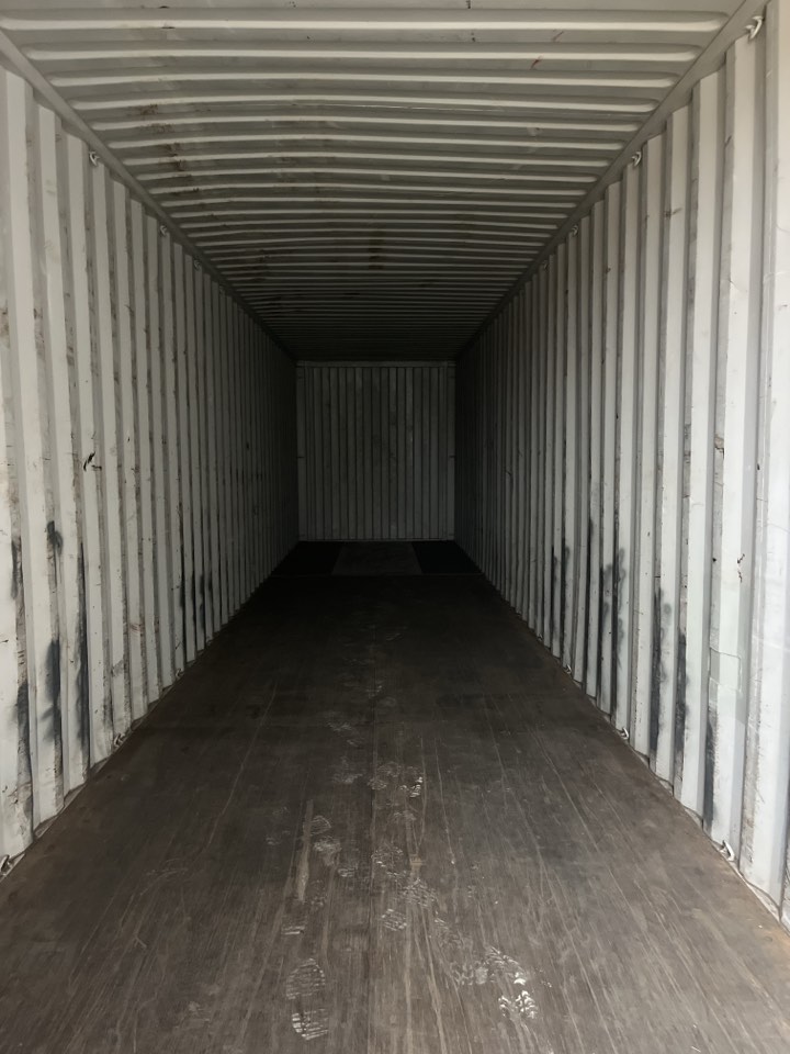 Available 8’x40’x9’6″ used storage unit that is classified as “cargo-worthy”!