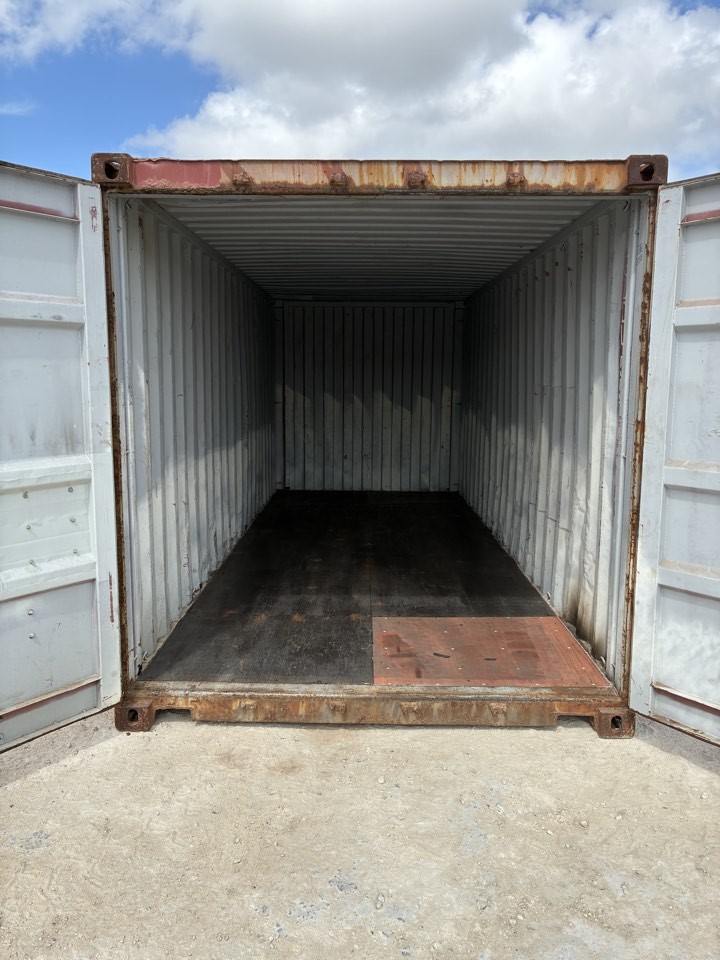 Available 8’x20’x8’6″ used storage unit that is classified as “cargo-worthy”!