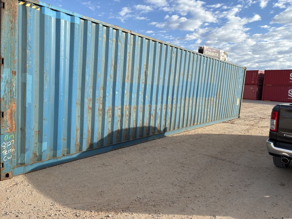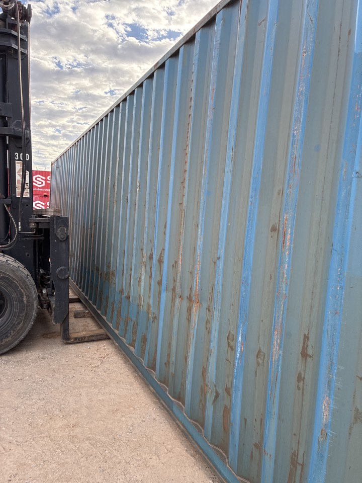 Available 8’x40’x8’6″ used storage unit that is classified as “cargo-worthy”!